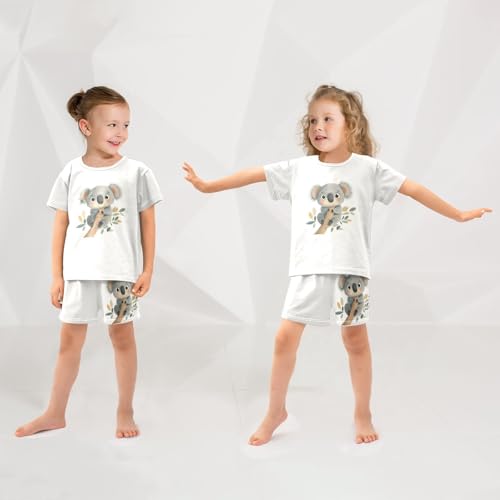 Koala Branch Leaves Ivory Pajama Set Short Sleeve Sleepwear Soft Pajamas Shorts Sets Cotton PJS 5Y 4