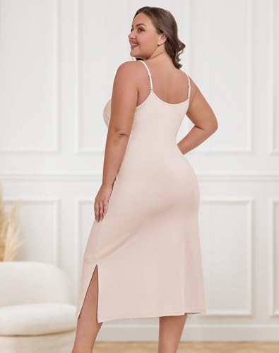 MANCYFIT Plus Size Full Slip for Women Long Slip Dress Spaghetti Strap Cami Nightgown 6