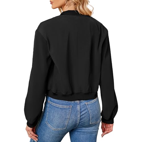 Zando Bomber Jacket Women 2025 - Short Cropped Jacket Women Button Down Long Sleeve Casual Varsity Jackets with Pockets 3