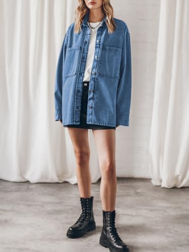 PLNOTME Womens Oversized Jean Jacket Casual Button Up Denim Overshirt Trendy Long Sleeve Denim Jacket Coat 5