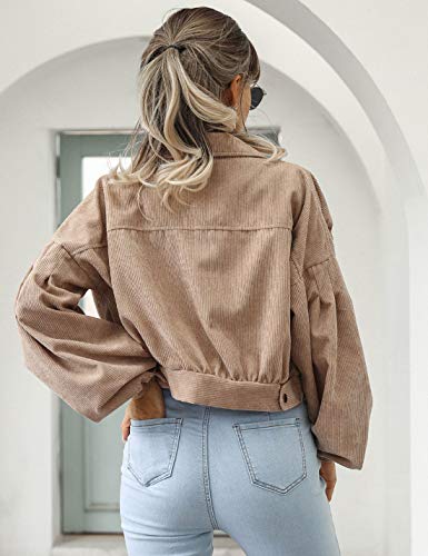 More information about Qiaomai Womens Cropped Corduroy Jacket Loose Button Down Puff Sleeve Shacket Coat