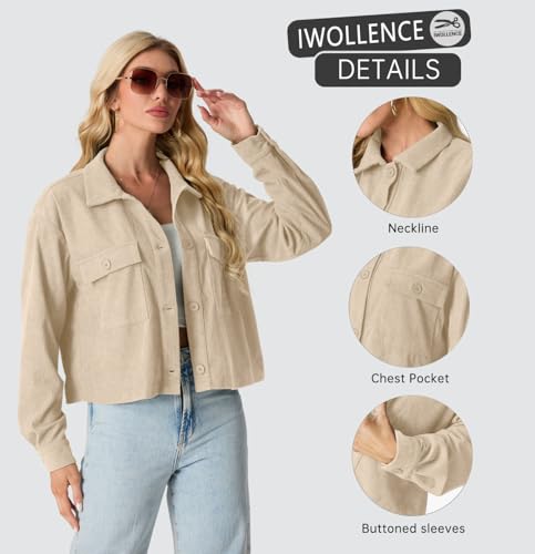 HOT ! IWOLLENCE Women's Cropped Shacket Jacket Fashion Button Down Corduroy Shacket Jackets Casual Crop Shirts Fall Coat Tops