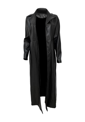 • Chic Features: Women long sleeve leather coat midi length faux leather jacket features with lapel collar and single breasted,button up closure,ankle length,straight style,chic and fashion for streetwear