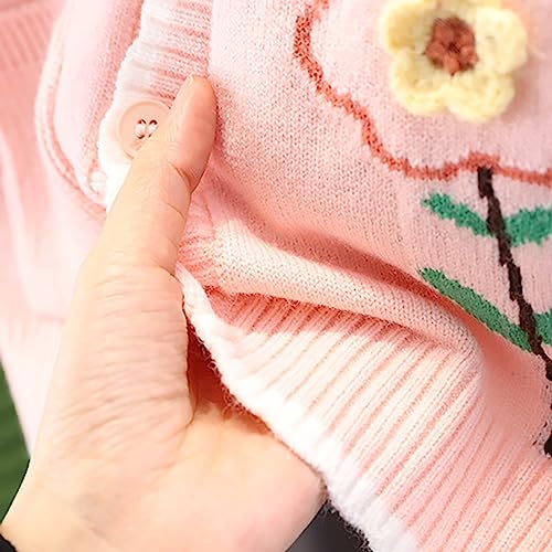 Toddler Baby Girls Floral Knit Sweater Vest Sleeveless Cardigan V Neck Button Down Shirt Flower Embroidered Tank Tops 6