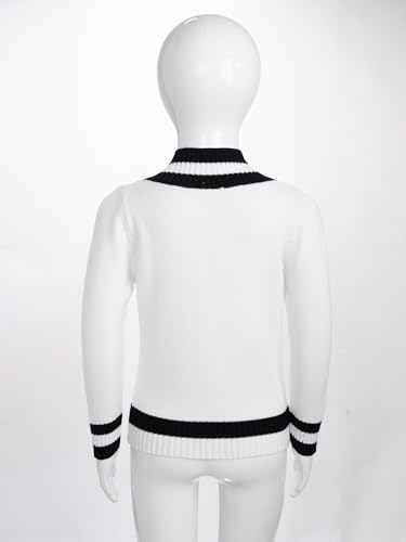 FEESHOW Kids Boys Girls School Uniform Sweater V Neck Pullover Sweater Striped Vest Long Sleeve Knitted Jumper 4