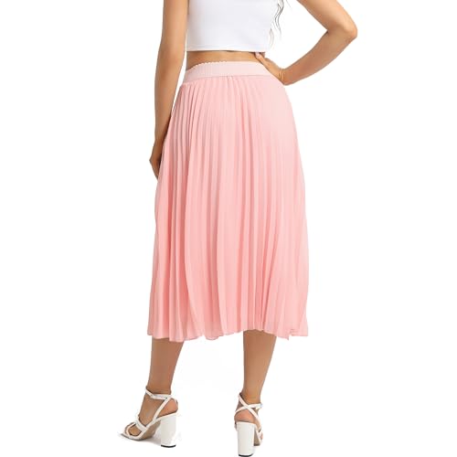 Womens Chiffon High Waist Skirt Pleated A-Line Swing Elastic Shirring Midi Length 4