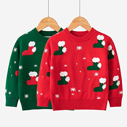 Boys Girls Christmas Socks Print Sweater Xmas Long Sleeve Warm Knitted Pullover Crewneck New Years Knitwear Tops 6