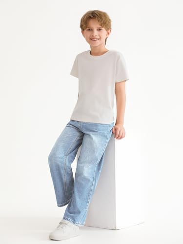 Haloumoning Boys Casual Baggy Denim Pants Kids Elastic Waist Wide Leg Jeans with Pockets 5-14 Years 3