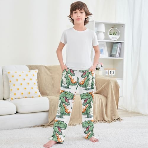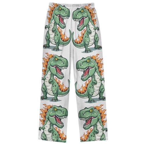 Boy's Pants Green Fire Dinosaur Jogger Pants Elastic Waist Long Bottoms Trousers with Pockets 6-14 Years 6