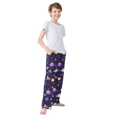 Space Galaxy Planet Long Pajama Pants Elastic Waist PJ Bottoms with Pockets S A110628 1