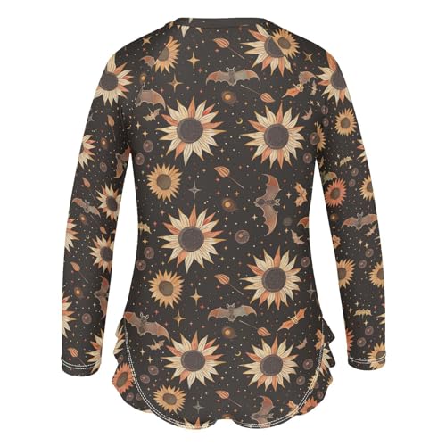 CaTaKu Girls One Piece Swimsuit Bat Sunflower Space Toddler Bathing Suit Long Sleeve UPF 50+ Rash Guard Swimwear 3-12Y 3