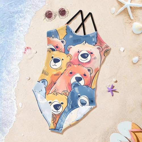 Bolaz Girls Swimsuits One-Piece Bathing Suits Multicolor Kids Sport Summer Beach Swimwear for 3-10 Years Old-Colorful Cute Bears 1