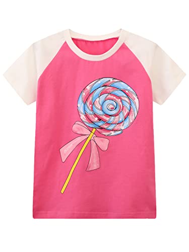 HILEELANG Toddler Girls' Short Sleeve Tees Shirts Ruffle Cotton Casual Graphic Summer Crewneck Jersey Tunic Tops 4T 7