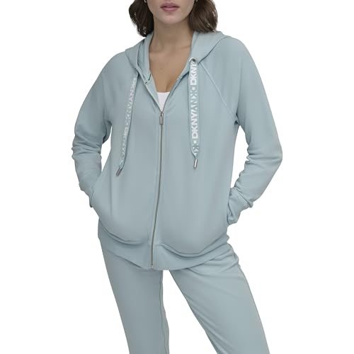 HOT ! DKNY womens Logo Drawstring Full Zip Fleece Hoodie