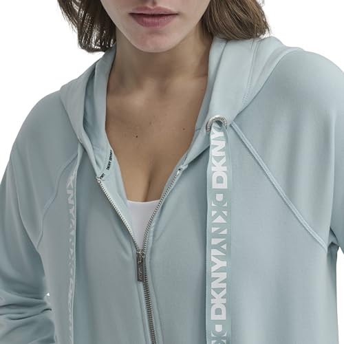 DKNY womens Logo Drawstring Full Zip Fleece Hoodie 7