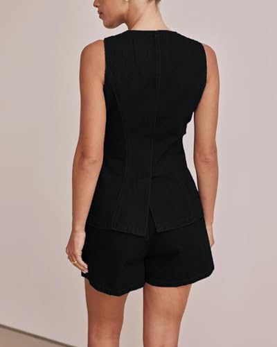 Kedera Women's Button Down Denim Vest Sleeveless Tank Tops Crew Neck Slim Fit Jean Jacket Waistcoat with Pockets 5