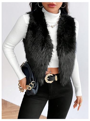 HOT ! Verdusa Women's Fuzzy Faux Fur Vest Jacket Sleeveless Open Front Waistcoat Outerwear