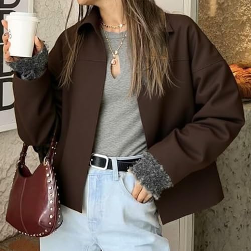 More information about Women's Faux Suede Bomber Jacket, Oversized Cropped Zip Up Lapel Pilot Coat for Spring Fall