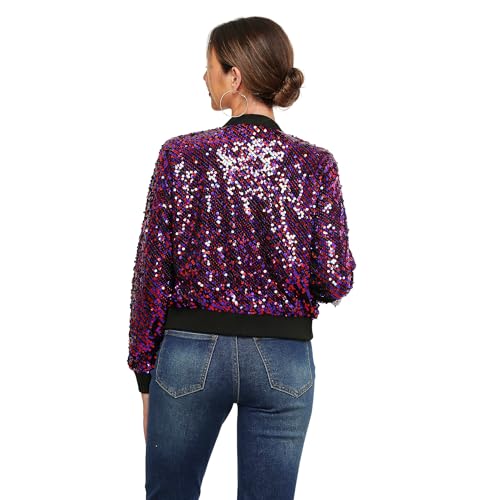 • Soft Material: 100% Polyester. The sequin jacket with soft and smooth full lining prevent sequins from scratching skin. The sequins are densely lined up and finely sewn, not easy to fall off or split. The sparkly bomber jacket is lightweight and comfortable to wear all day.