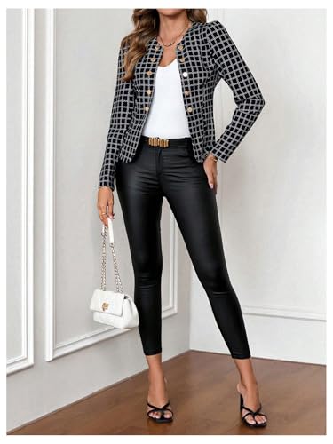 SweatyRocks Women's Plaid Jackets Puff Long Sleeve Button Office Suit Jacket Outerwear 1