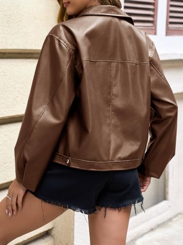 Cicy Bell Womens Faux Leather Bomber Jackets Zip Up Cropped Lapel Moto Coats Trendy Casual Outerwear with Pockets 6