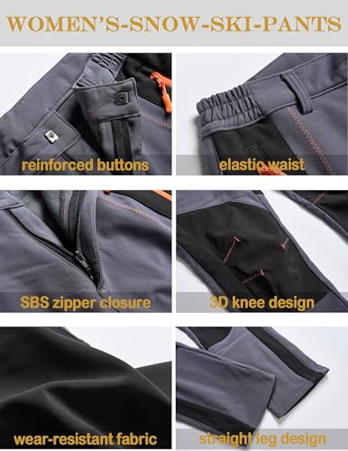 Women's Snow Ski Pants Fleece Lined Winter Outdoor Waterproof Insulated Warm Softshell Hiking Cargo Pants 5