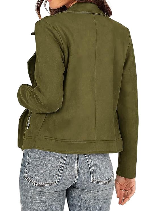• 【Material】This faux leather jacket is made of suede like fabric, with a smooth and delicate touch, a little elasticity, and a snug fit that adds comfort. It is a must-have item in your autumn women's jacket collection.