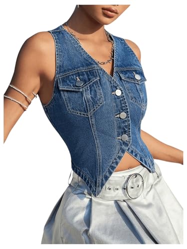 GORGLITTER Women's Y2K Denim Vest Sleeveless V Neck Denim Top Button Down Vest Jacket 5