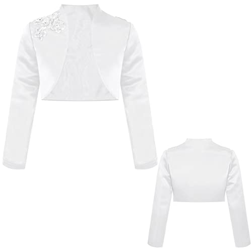 HOT ! Sholeno Kids Girls Flower Satin Cardigan Long Sleeve Open Front Cropped Jacket Bolero Shrug Wedding Party Cape
