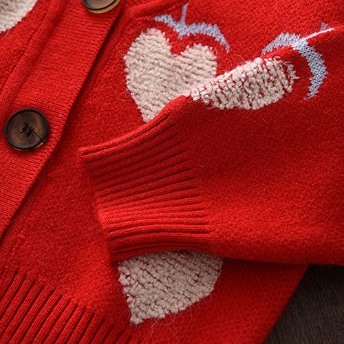 Kids Toddler Girls V Neck Knitted Cardigan Long Sleeve Winter Warm Sweater Heart Pattern Coat 5