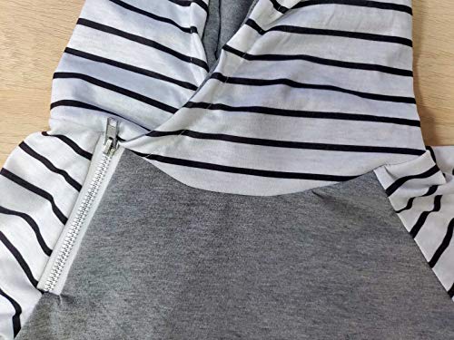 4-13T Girls Fall Winter Tops Splicing Striped Printed Zipper Hooded Sweater with Pocket 6