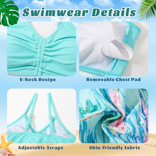 • Fashion Design: Girls 3 Piece Bikini Set, V-neck solid color bikini top and removable chest pad, Adjustable straps and high-waisted bikini bottom provides a comfortable fit. Matching stylish tropical pattern print quick dry Cover Up, make your girl extra confident and beautiful. Enjoy the fun of swimming and sunshine to the fullest.