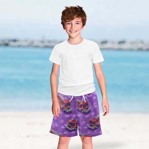 JUNZAN Fighters Red Fire Truck Purple Boys Swimming Trunks Quick Dry Boys Boardshorts Kids Swimwears Summer Holiday 2T 6