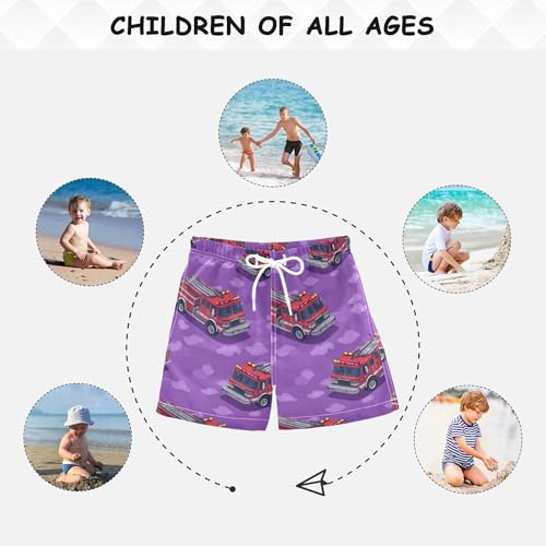 JUNZAN Fighters Red Fire Truck Purple Boys Swimming Trunks Quick Dry Boys Boardshorts Kids Swimwears Summer Holiday 2T 4