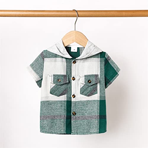 More information about Kids Toddler Baby Boys Spring Plaid Short Sleeve Hooded Tshirt Clothing Apparel
