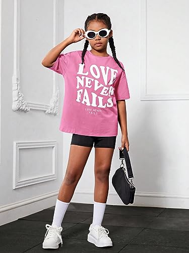 WDIRARA Girl's Letter Print Round Neck Half Sleeve T Shirt Oversized Casual Tee 5