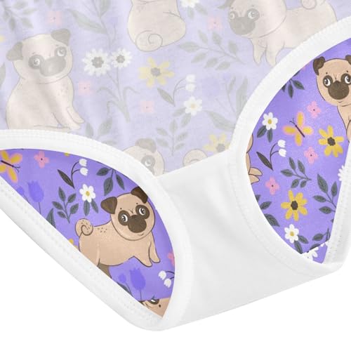 Wusikd Pugs Girls' Underwear Cotton Flowers Girls Briefs Soft Toddler Underwear 2T 6