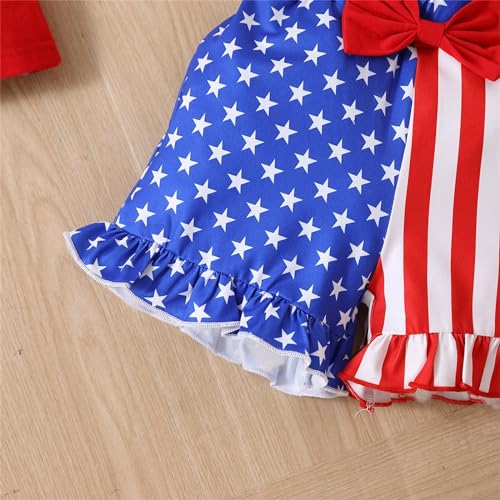 4th of July Toddler Baby Girls Outfit USA Flag Stripe Flutter Sleeve T Shirt and Shorts Set Independence Day Red Shirt 3