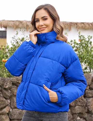 Flygo Womens Cropped Puffer Jacket Zip Up Stand Collar Lightweight Quilted Padded Down Winter Warm Jackets Coats with Pockets 3