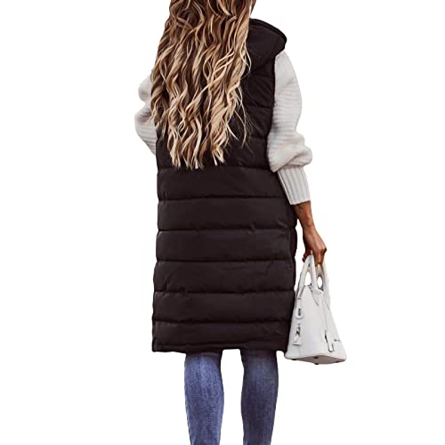Awoscut Women's Long Sleeveless Waistcoat Hooded Neck Zipper Puffer Vest Tops Casual Spring Fall Winter Coat Outerwear 6