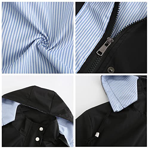 • Features:The womens raincoats are designed with waterproof and windproof,dirt-resistant and anti-wrinkle material.Hooded design,classic stand collar,fashion stripes,button and zip closure.Two practical front flap pockets with buttons are convenient for carrying your belongings.The waist drawstring highlights the female curve