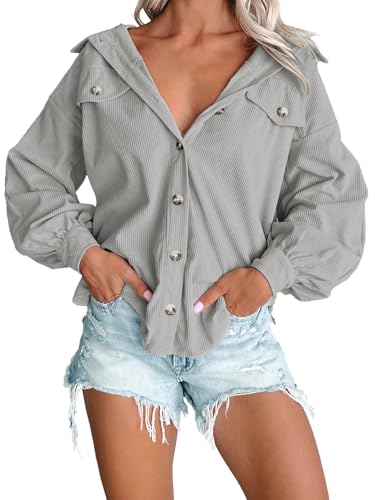 Womens Puff Long Sleeve Corduroy Jacket Casual Solid Button Coat Fall Fashion Loose Outfits Tops 5