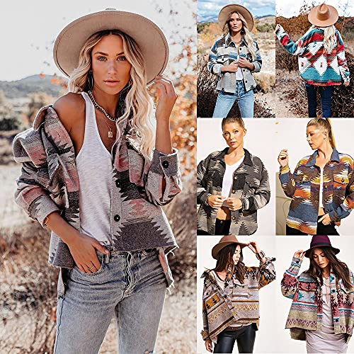 • Feature: Long sleeve Single breasted shacket, button down front pockets, lapel collar cropped coat, vintage geometry graphic print.