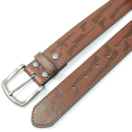 Firearms Pattern Leather Belt Strap and Metal Buckle 1.5" Wide with Snaps - Handgun Rifle Shotgun Guns 5
