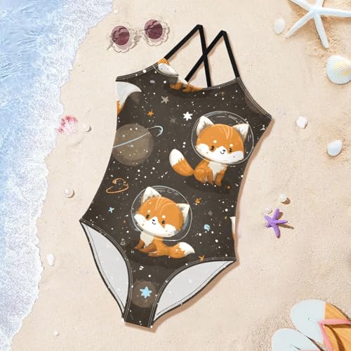 Girls Swimsuit Space Fox Pattern One Piece Swimwear 5