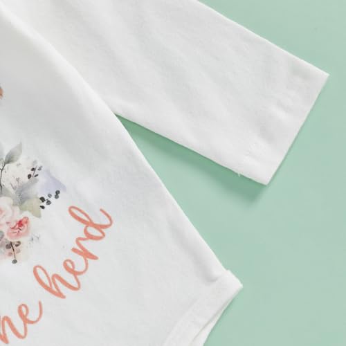 • Material:Newborn baby girl clothes,made of 95%cotton and 5% polyester.Super soft,breathable,skin friendly and cozy.New to the herd onesie baby girl pants set,coming home outfit girl,so cute