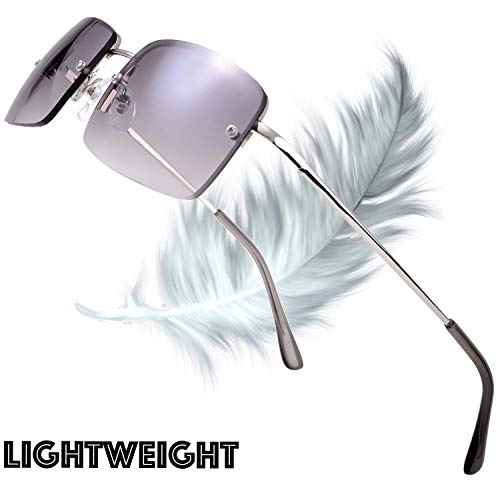 More information about The Fresh Minimalist Small Rectangular Sunglasses Clear Eyewear Spring Hinge - Gift Box Package (303-Silver, Gradient Grey, 57)