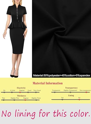 • Style: V Neckline, Short Sleeve, Decorative Buttons, Peplum detail helps to hide the belly, Adjustable Belt, Knee-Length Slim Fit Sheath Silhouette, A Concealed Back Zipper, Back Slit for easy walking.