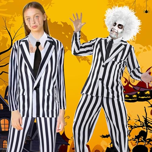 • 【Unique Design】making unique and fun costumes that provide the best costume experience! The jacket and pants have the black and white stripe pattern. The suit blazer is a simple, one-button style that make it the best halloween party costume.