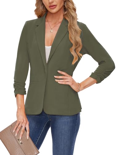 • ✔Feature: 3/4 Ruched Sleeve Blazer, Open front blazer suit jackets with single front button, Notched lapels collar, Work office suit jackets, Solid color, Front lined, Blazers for women work casual